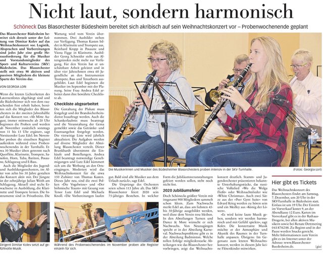 Blasorchester Büdesheimm probt für den großen Auftritt beim Weihnachtskonzert in