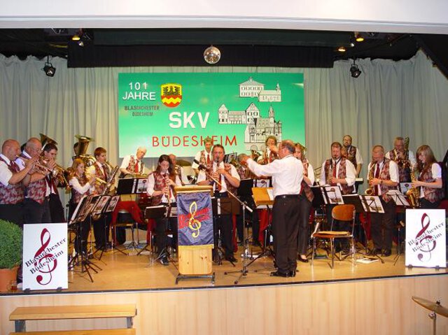 Die Musiker verschönern die SKV Halle für ihre Jubiläumsfeier
