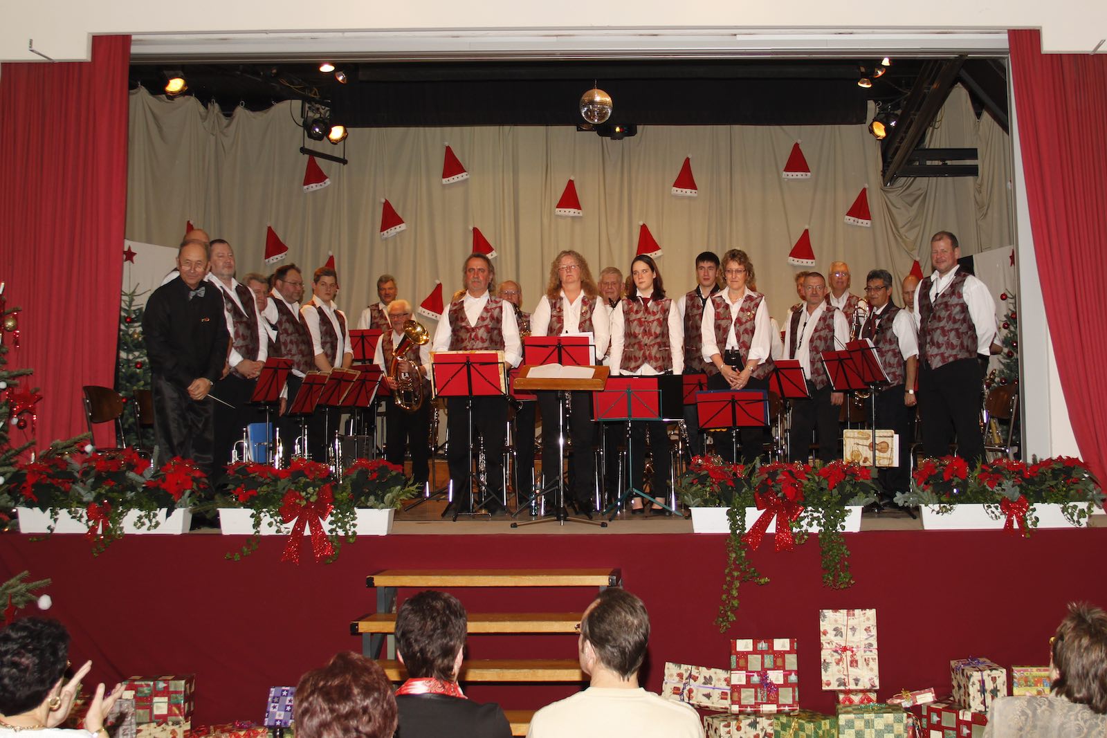 Das Weihnachtskonzert des Blasorchesters Büdesheim bot ein Feuerwerk an musikalischen Stilrichtungen. Alle Instrumentengruppen waren bei der Darstellung dieser Vielfalt gefordert. Eröffnet wurde der Abend vom Klarinettenregister mit ‚Baby Elephand Walk‘ und ‚Dornenvögel‘ in einem Medley bekannter Filmmelodien von Henry Mancini. Die Saxophone übernahmen dann die Melodieführung mit bekannten Swingtiteln in der ‚Glenn Miller-Parade‘. „So wie die Saxophone singen, so schmachten die Trompeten“ – mit diesen Worten übergab Thomas Kasten, der humorvoll durch das Programm führte, die musikalische Verantwortung an das leichte Blech mit ‚I will follow him‘. Genau wie Whoopi Goldberg in dem Kinohit ‚Sister Act‘ intonierte der Büdesheimer Trompetensatz die ersten Takte zart und einfühlsam, um dann mitten im Lied fetzig loszulegen. Tenorhörner und Tuben brillierten bei Marsch und Polka, die Posaunen gaben ihr Bestes bei ‚Vielen Dank für die Blumen‘ von Udo Jürgens, der der Musikwelt über 1000 Titel hinterließ. Ein besonderes Highlight waren die jungen Musiker der Flötengruppe unter der Leitung von Verena Hoos. Begeisterten Applaus erntete die Biene Maja, die von den beiden zehnjährigen Solistinnen Luise Seifried und Fiona Figge bravurös interpretiert wurde. Pop und Rock bot das Ausbildungsorchester Büdesheim mit den Titeln ‚Aladdin‘, ‚Rolling in the Deep‘ der englischen Künstlerin Adele und ‚Born to be wild‘ aus dem Film ‚Easy Rider‘. Hier kam der E-Bass von Maximilian Schmidt besonders zum Tragen. Nach der Pause näherte sich das Stammorchester der klassischen Musik mit einem Walzerpotpourri von Johann Strauß jr., bei dem die Rhythmusgruppe durch viele Takt- und Tempiwechsel gefordert wurde. Nach den romantischen Evergreens ‚Only You‘ und ‚Crying in the Chapel‘ kündigte der Moderator ganz ungewöhnliche Klänge für die SKV-Turnhalle an: „Jetzt fehlt nur noch Jazz!“ Dieser Aufforderung kamen vier der Saxophonisten nach mit Quartett-Arrangements von Duke Ellington und Thelonious Monk. Zum Abschluss brachte das Stammorchester mit bekannten Weihnachtsmelodien wie ‚Marys Boy Child‘ und ‚Winter-Wunderland‘ die mehr als 180 Gäste im ausverkauften Saal in festliche Stimmung. Diese dankten mit langem Applaus, als Lutz Edel, der Abteilungsleiter der SKV-Orchester, dem Dirigenten Dimitar Kolev für die in 2014 geleistete Trainingsarbeit dankte und die ersten Konzerte für 2015 ankündigte. Fest geplant sind bereits die Feier zum ersten Mai des SV Oberdorfelden und der Vatertag bei der Freiwilligen Feuerwehr.