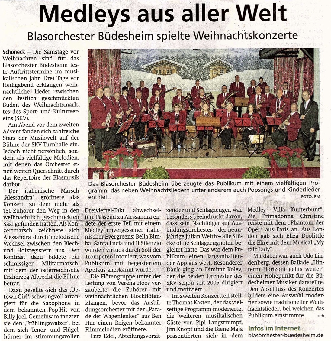 Blasorchester Büdesheim spielte Weihnachtskonzerte.