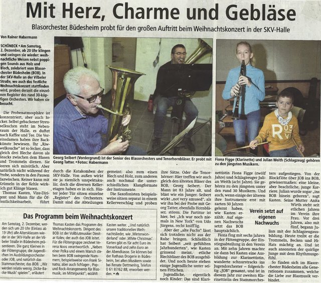 Blasorchester Büdesheimm probt für den großen Auftritt beim Weihnachtskonzert in