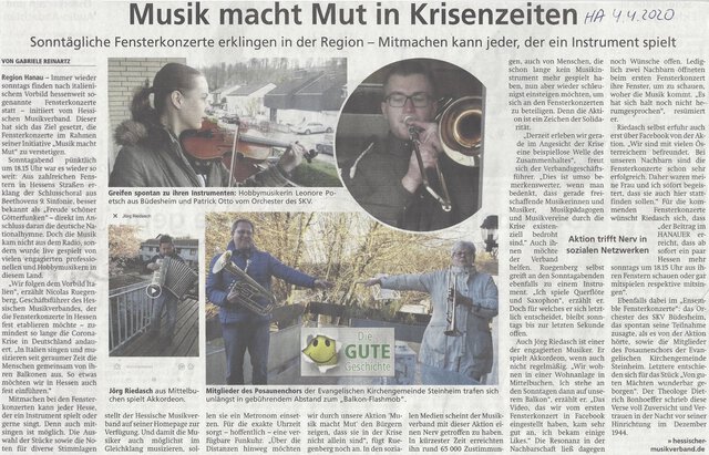 Ausschnitt aus dem Hanauer Anzeiger vom 04.04.20.